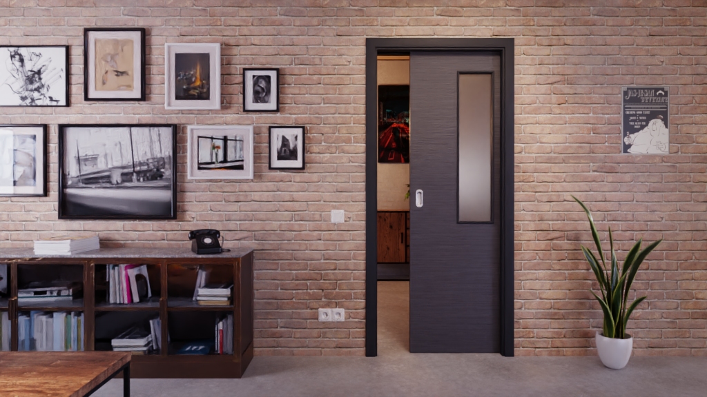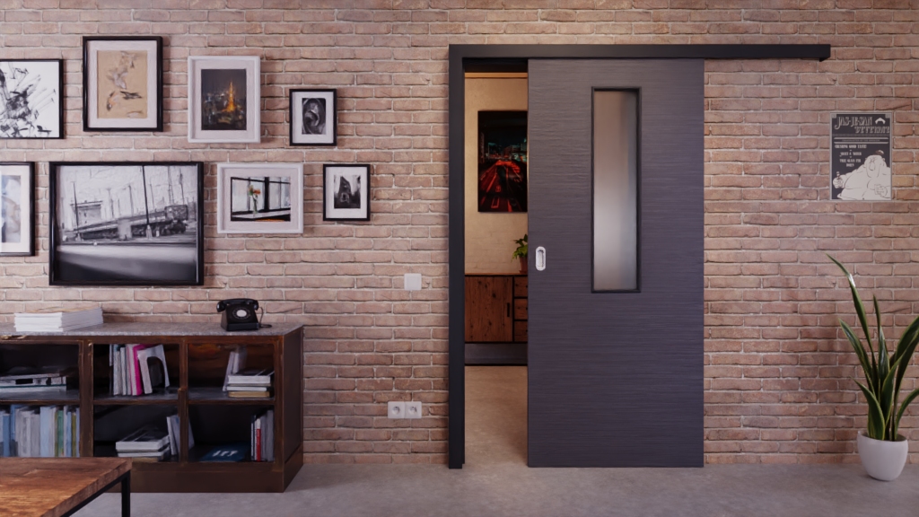 Łatwa w pielęgnacji drzwi przesuwne z teksturowanym dekoracyjnym wykończeniem Durat w kolorze antracytowym:
