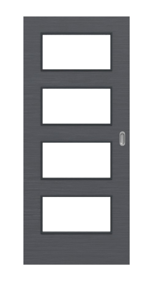 Cztery przestronne przeszklenia dostarczają dodatkowego światła do ciemnych pomieszczeń. Są one harmonijnie oprawione przez nałożone listwy. Powierzchnia Versio-Durat zachwyca subtelną strukturą, która jest odczuwalna zarówno wizualnie, jak i dotykowo. Jej spokojny kolor antracytowy nadaje pomieszczeniu harmonijną atmosferę. Dodatkowo, warstwa wierzchnia jest niezwykle łatwa w pielęgnacji i odporna na ścieranie oraz uderzenia.