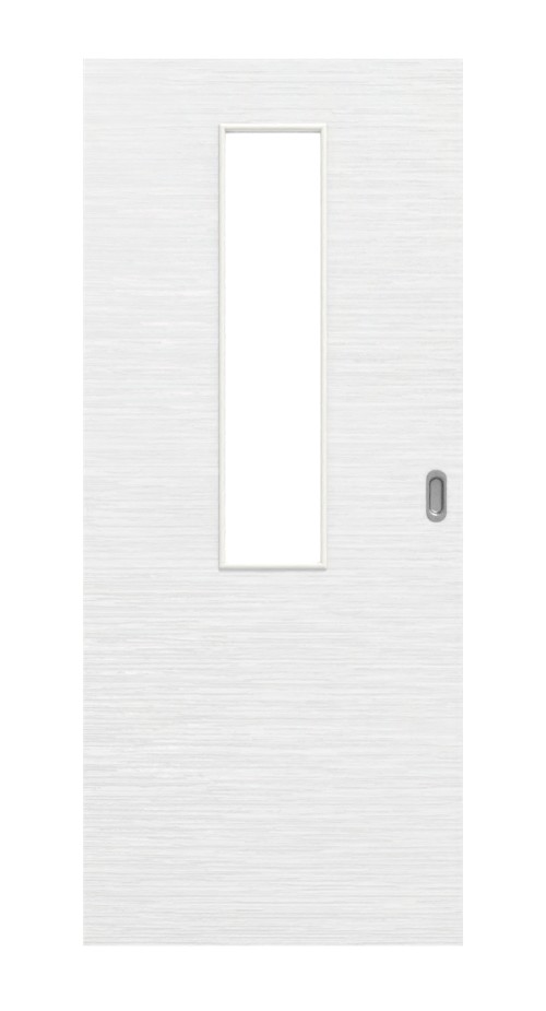 Piękne białe drzwi przesuwne z teksturowaną powłoką Durat i przeszkleniem: