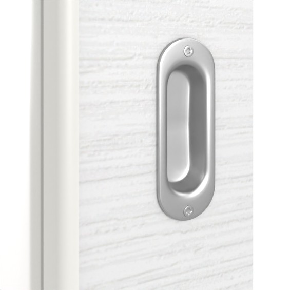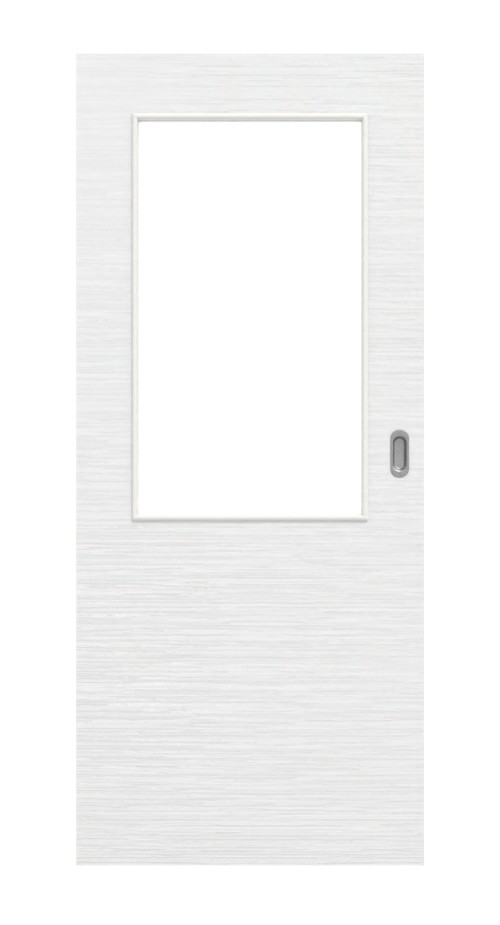 Estetyczne białe drzwi przesuwne z teksturowaną powierzchnią Durat i przeszkleniem: