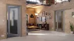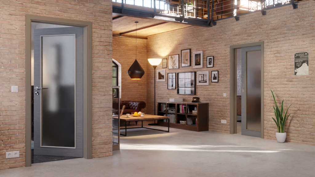Zapraszające drzwi przesuwne z strukturalnym dekorem Versio-Durat i rdzeniem pełnoobciążeniowym: