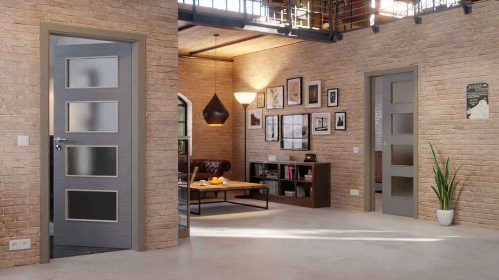 Zapewniają one przyjemny wygląd dzięki czterem dużym przeszkleniom, które są stylowo otoczone nałożonymi listwami szklanymi. Powierzchnia Versio-Durat zachwyca delikatną, głęboko wytłoczoną strukturą oraz zrównoważonym odcieniem w szarości Hygge. Jest przyjemna w dotyku i dzięki swojej solidnej konstrukcji chroni przed ścieraniem i uderzeniami.