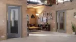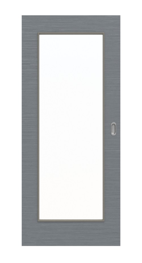 Designowa drzwi przesuwne o strukturalnym dekorze Versio-Durat i szklanym wcięciu: