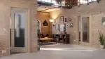 Stylowe drzwi przesuwne z teksturowaną powierzchnią w odcieniu taupe: