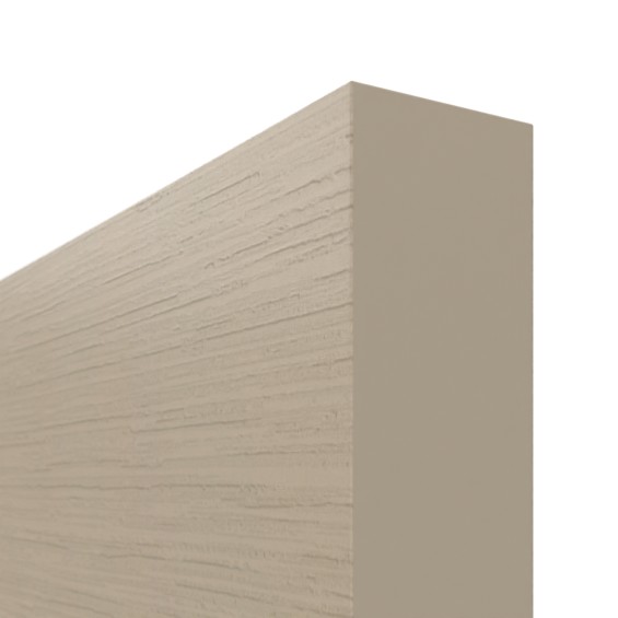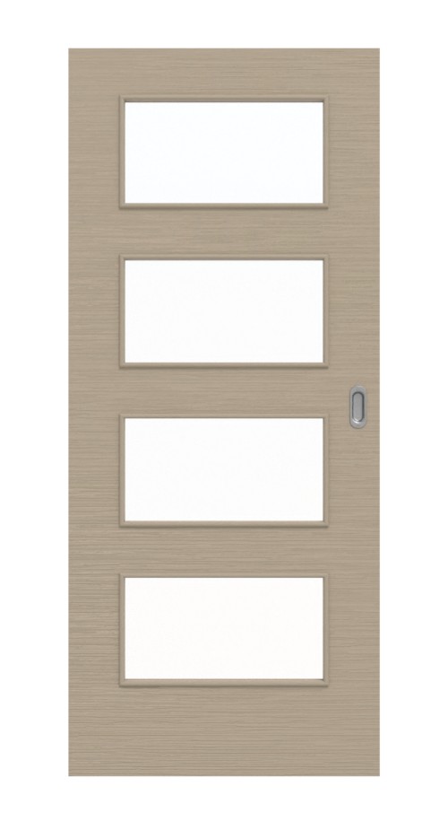 Szerokie cztery szklane wstawki, umieszczone jedna nad drugą w skrzydle drzwi, pozwalają na obfity dopływ światła i są otoczone delikatnymi ramkami szklanymi. Dzięki harmonijnemu odcieniowi taupe oraz wyczuwalnej, głęboko wytłaczanej strukturze, powierzchnia Versio-Durat stylowo wkomponowuje się w wnętrze. Jest nie tylko estetycznie atrakcyjna, ale także wyjątkowo odporna na codzienne obciążenia.