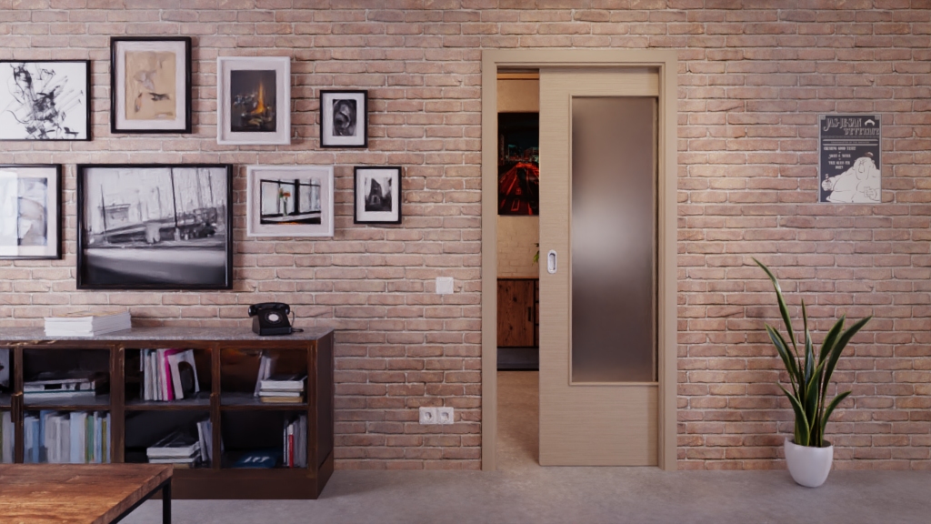 Atrakcyjne drzwi przesuwne w kolorze taupe z teksturowaną powierzchnią: