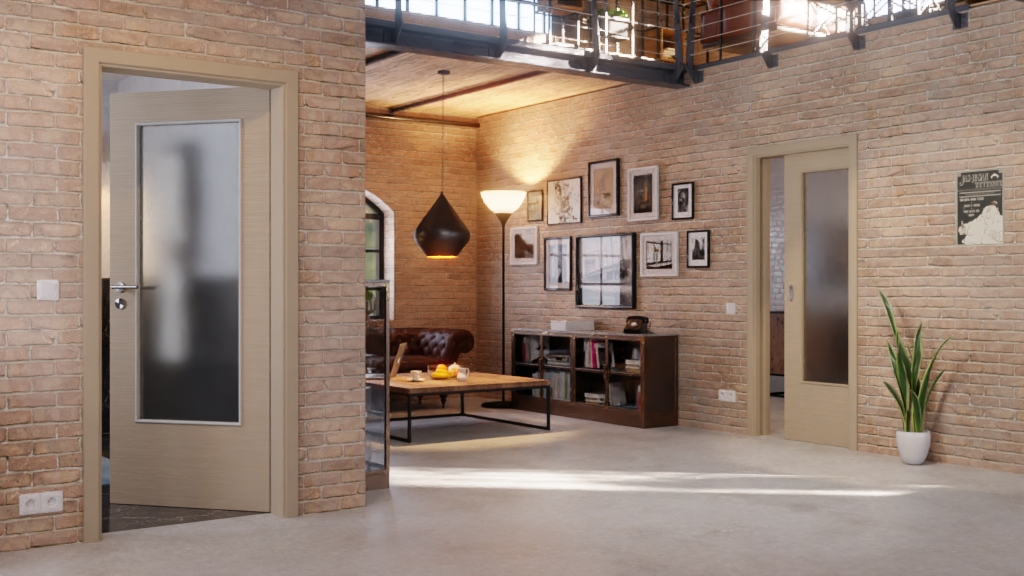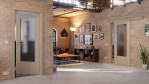 Przestronny przeszklenie z otaczającymi listwami szklanymi zapewnia dodatkowe światło w pomieszczeniu. Powierzchnia Versio-Durat zachwyca delikatną, głęboko wytłaczaną strukturą oraz zrównoważonym odcieniem w taupe. Jest przyjemna w dotyku i dzięki swojej solidnej konstrukcji odporna na ścieranie i uderzenia.