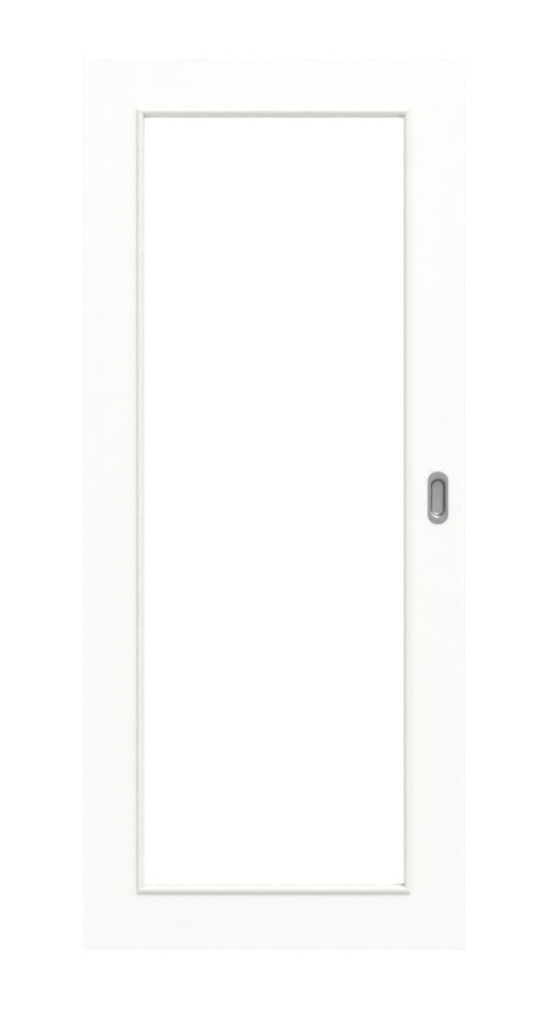 Elegancka drzwi przesuwne z przeszkleniem i powierzchnią Durat-Versio w ultramatowej bieli: