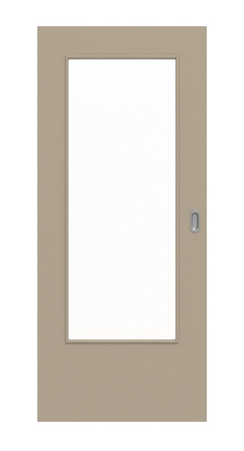 Praktyczne drzwi przesuwne z przeszkleniem i powierzchnią Durat-Versio w ultramatowym taupe: