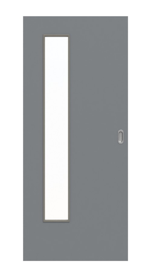 Stylowe drzwi przesuwne z przeszkleniem i powierzchnią Durat-Versio w ultramatowym odcieniu szarości Hygge:
