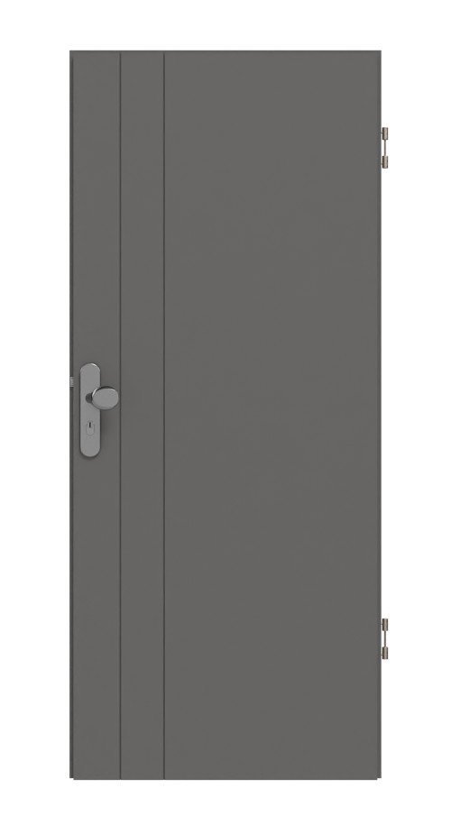 Po stronie zamka biegną dwie filigranowe V-fugi wzdłuż całej długości skrzydła drzwi. Szlachetny lak w kolorze Hygge Szary podkreśla elegancki wygląd.