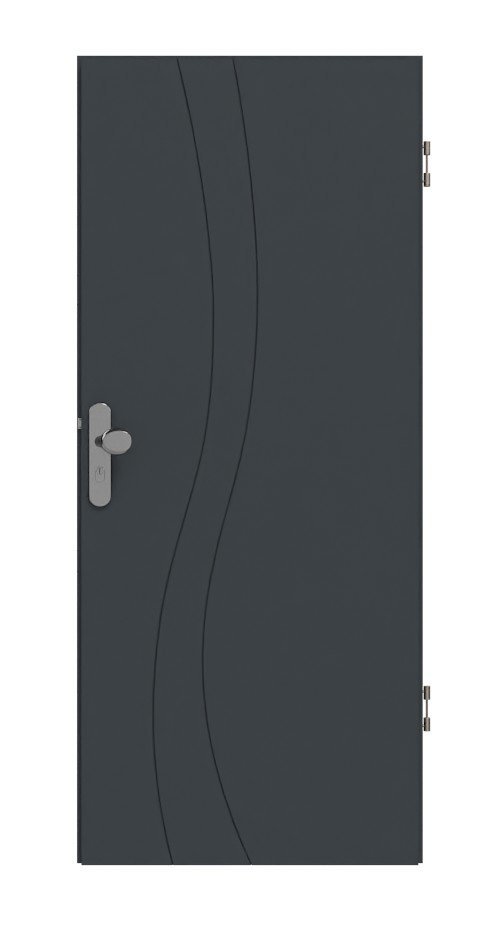 Dwie delikatnie falujące V-fugi biegną pionowo wzdłuż długości skrzydła drzwi, wprowadzając świeży powiew do wnętrz. W połączeniu z wysokiej jakości lakierem w kolorze antracytowym linie prezentują się doskonale.