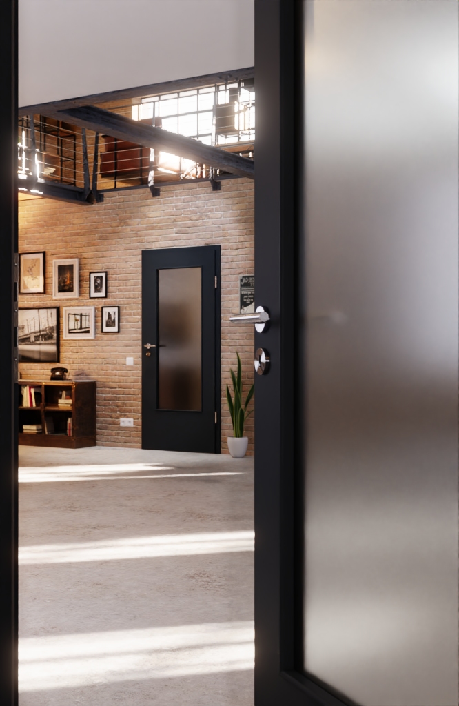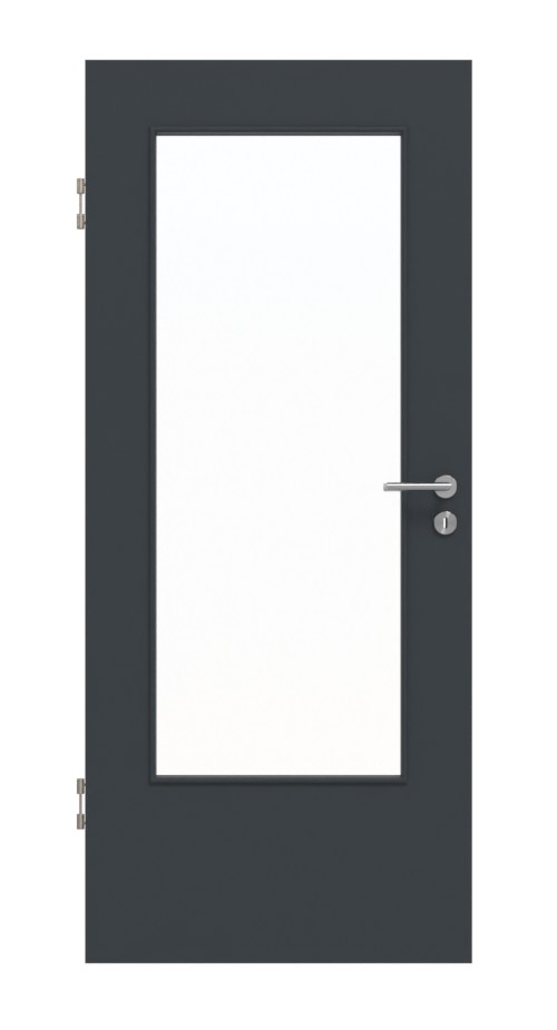 Zapraszający charakter drzwi nadaje im duże przeszklenie, otoczone delikatnymi listwami szklanymi. Udoskonalone równomierną lakierowaniem w kolorze antracytowym, design drzwi stylowo wkomponowuje się w Twoje wnętrza.