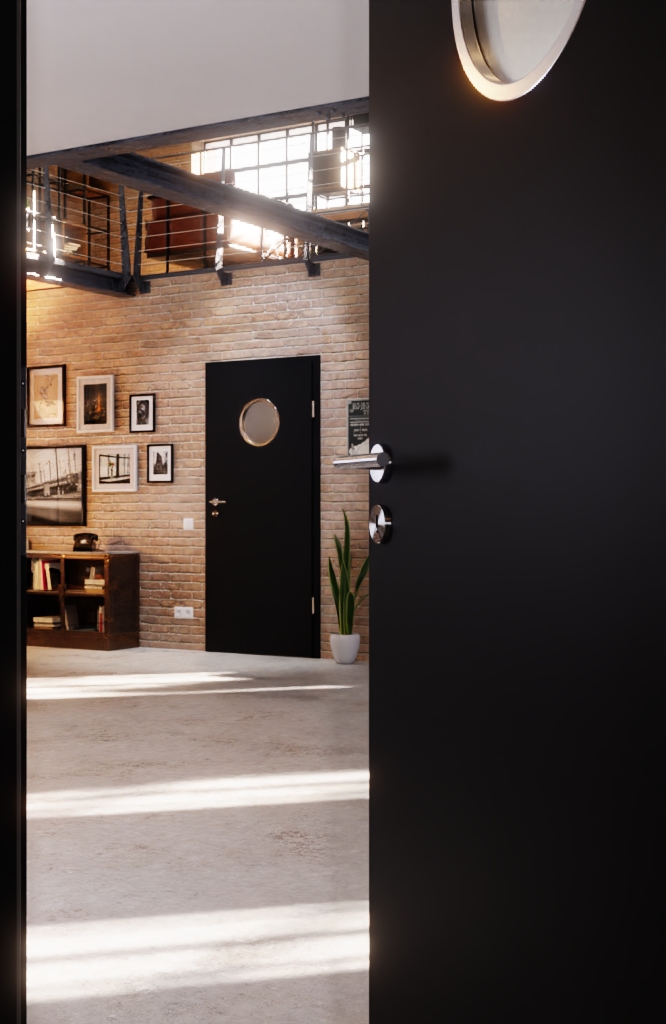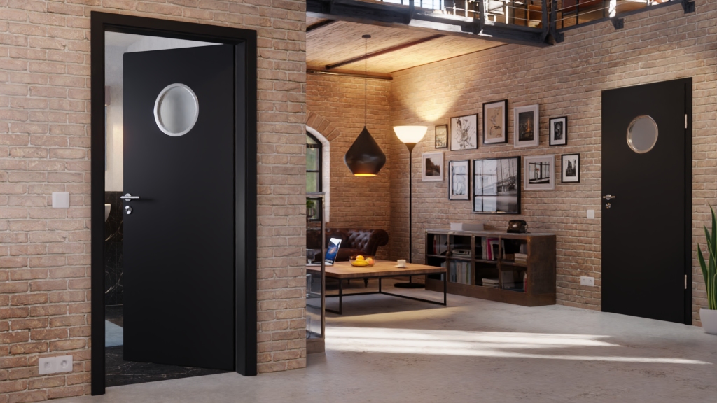 Atrakcyjna drzwi wewnętrzne posiada wykończenie z wysokopołyskowego lakieru oraz rdzeń z pełnego wióru: