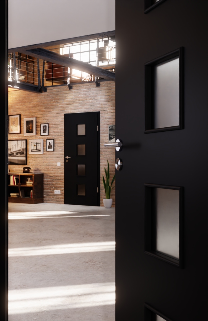 Solidne drzwi do wnętrz mają wykończenie z matowego lakieru i rdzeń z pełnej płyty: