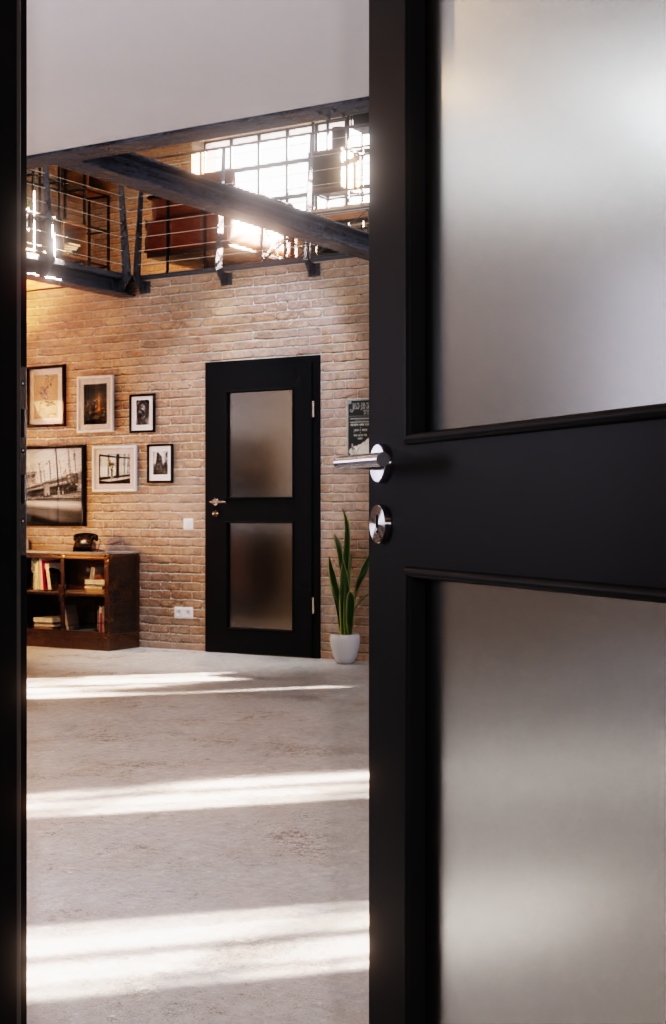 Nowoczesne drzwi wewnętrzne mają matowe wykończenie i rdzeń z pełnej płyty wiórowej: