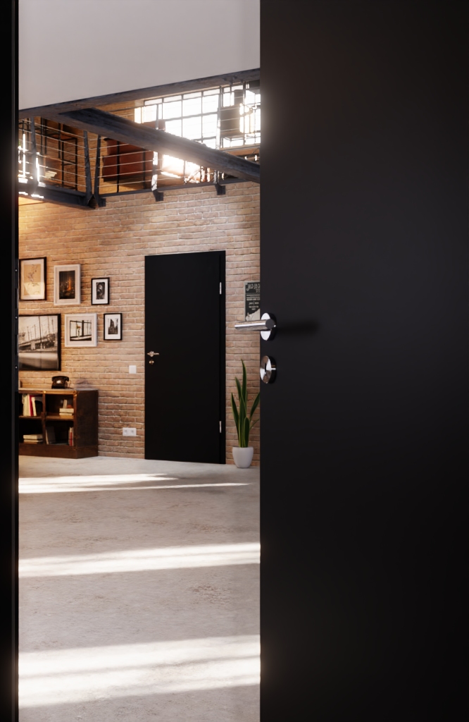 Wysokiej jakości drzwi wewnętrzne posiadają wykończenie z matowego lakieru oraz standardowo rdzeń z płyty wiórowej: