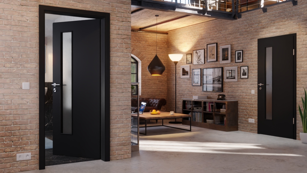 Wysokiej jakości drzwi wewnętrzne mają wykończenie z wysokiego połysku i rdzeń z pełnego wióru: