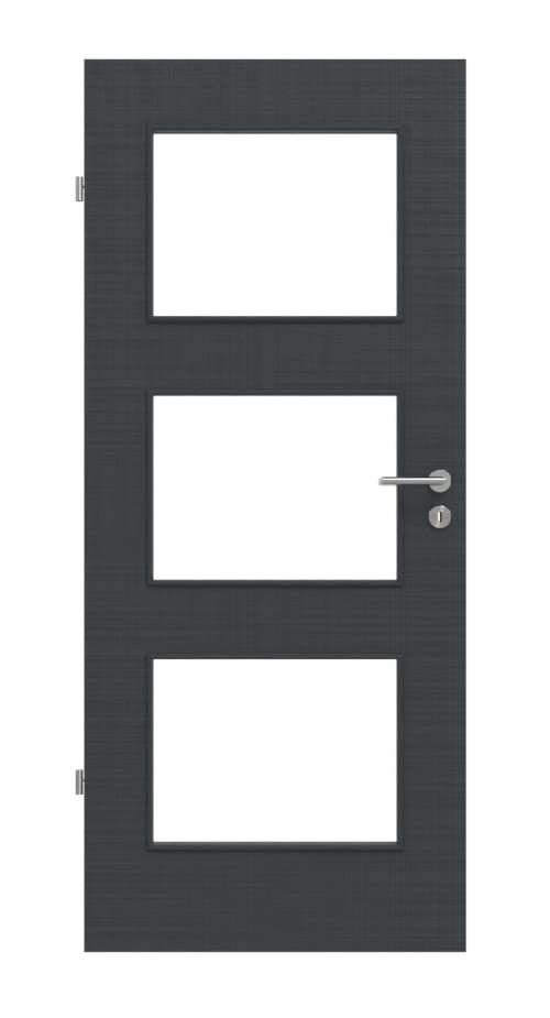 Duży dopływ światła umożliwiają trzy równomierne wycięcia szklane. Powierzchnia Versio-Durat zachwyca zarówno wizualnie, jak i dotykowo. Delikatnie wyczuwalne struktury w wyglądzie tekstyliów towarzyszą spokojnemu odcieniowi Anthrazit. Ponadto powłoka okazuje się łatwa w pielęgnacji i odporna na uderzenia.