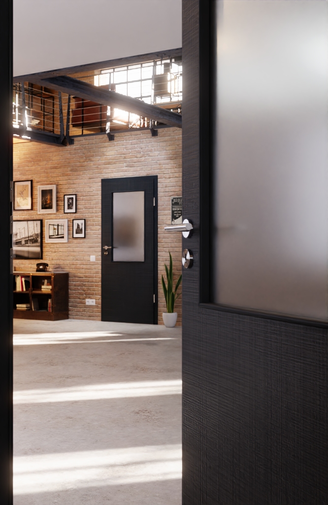 Nowoczesne drzwi wewnętrzne mają powierzchnię z Durat i rdzeń z pełnego wióru: