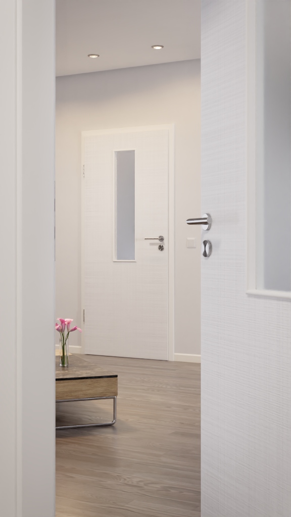 Nowoczesne drzwi do wnętrz mają delikatnie strukturalną powierzchnię z Durat i rdzeń z pełnego wióru: