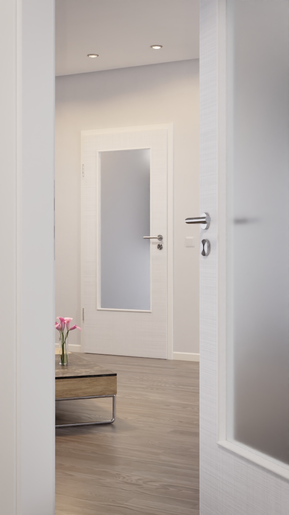 Solidne drzwi do wnętrz mają delikatnie strukturalną powierzchnię z Duratu oraz rdzeń z pełnego wióru: