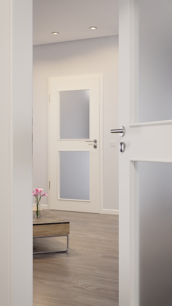 Elegancka lakierowana drzwi wewnętrzne mają rdzeń z pełnego wióru:
