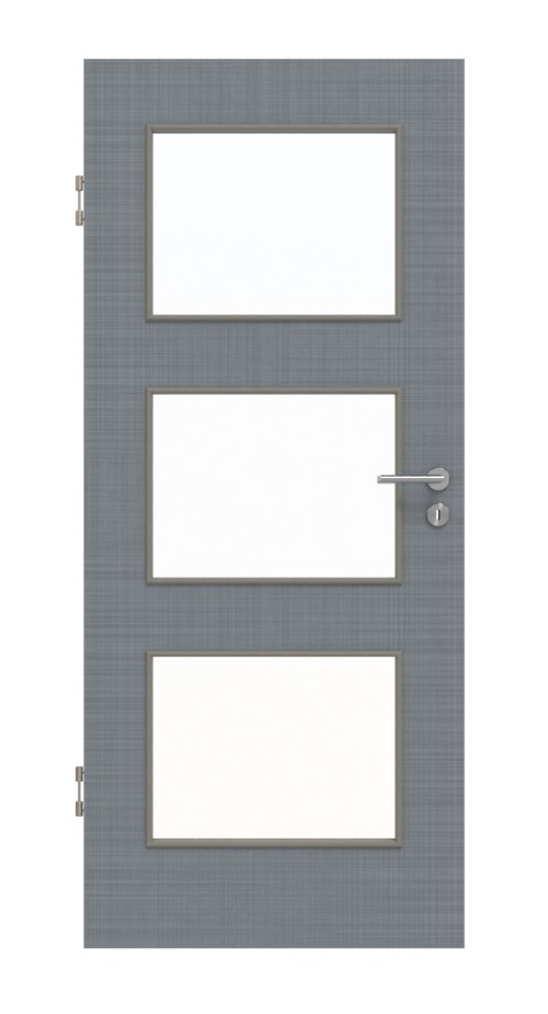 Duży dopływ światła zapewniają trzy równomierne wycięcia szklane. Design dopełnia delikatnie wyczuwalna dekoracja Cotton like w szarości. Spokojny odcień towarzyszy subtelna tekstylna struktura. Ponadto powierzchnia jest odporna na uderzenia i ścieranie, łatwa w pielęgnacji i trwała.