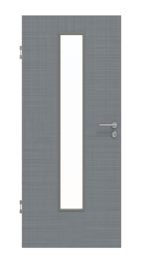 Charakterystycznym elementem współczesnego wyglądu jest smukłe przeszklenie w środkowej części skrzydła drzwi. Design dopełnia subtelna dekoracja Cotton like w szarości. Spokojny odcień towarzyszy delikatna tekstura materiału. Ponadto powierzchnia jest odporna na uderzenia i ścieranie, łatwa w pielęgnacji i trwała.