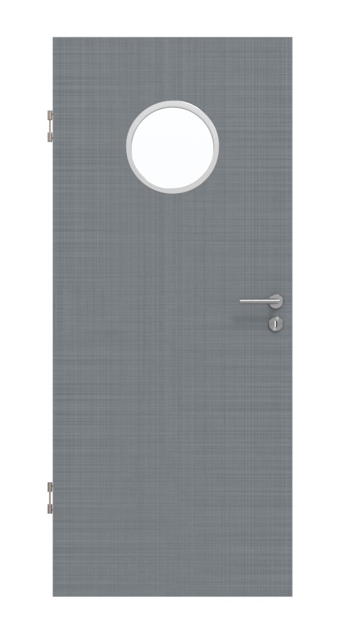 Dzięki zabawnemu szklonemu wycięciu w kształcie bulaja model zyskuje nowoczesny, marynistyczny wygląd. Stalowe listwy szklane tworzą odpowiednią ramę wokół otworu świetlnego. Design dopełnia delikatnie wyczuwalna dekoracja Cotton like w szarości. Spokojny odcień towarzyszy subtelna tekstylna struktura. Ponadto powierzchnia jest odporna na uderzenia i ścieranie, łatwa w pielęgnacji i trwała.