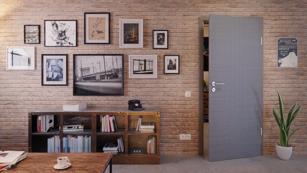 Stabilne drzwi wewnętrzne mają delikatnie strukturalny dekor z Durat oraz rdzeń z płyty wiórowej: