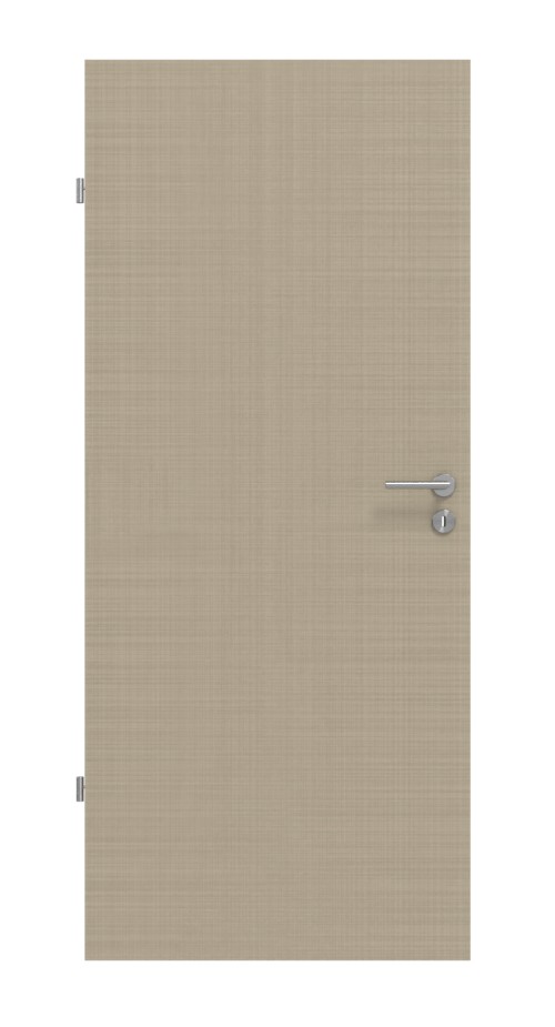 Solidne drzwi wewnętrzne posiadają powłokę Durat w wyglądzie lnu oraz rdzeń z płyty wiórowej: