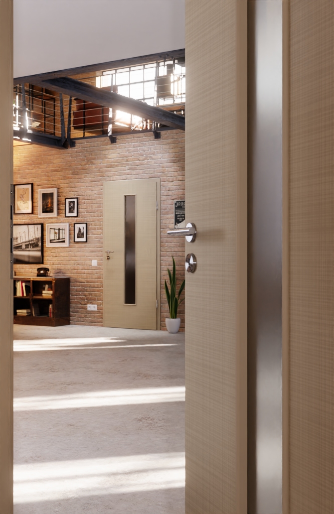 Trwałe drzwi wewnętrzne mają delikatnie strukturalny dekor z Versio-Durat oraz rdzeń z pełnego wióru: