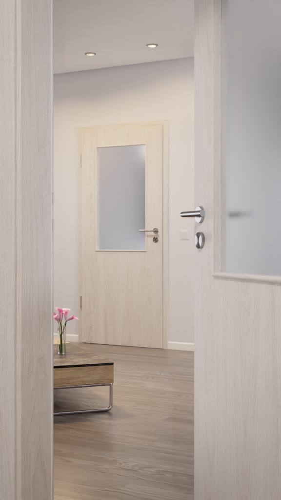 Stylowe drzwi wewnętrzne posiadają solidny rdzeń pełnoobwodowy:
