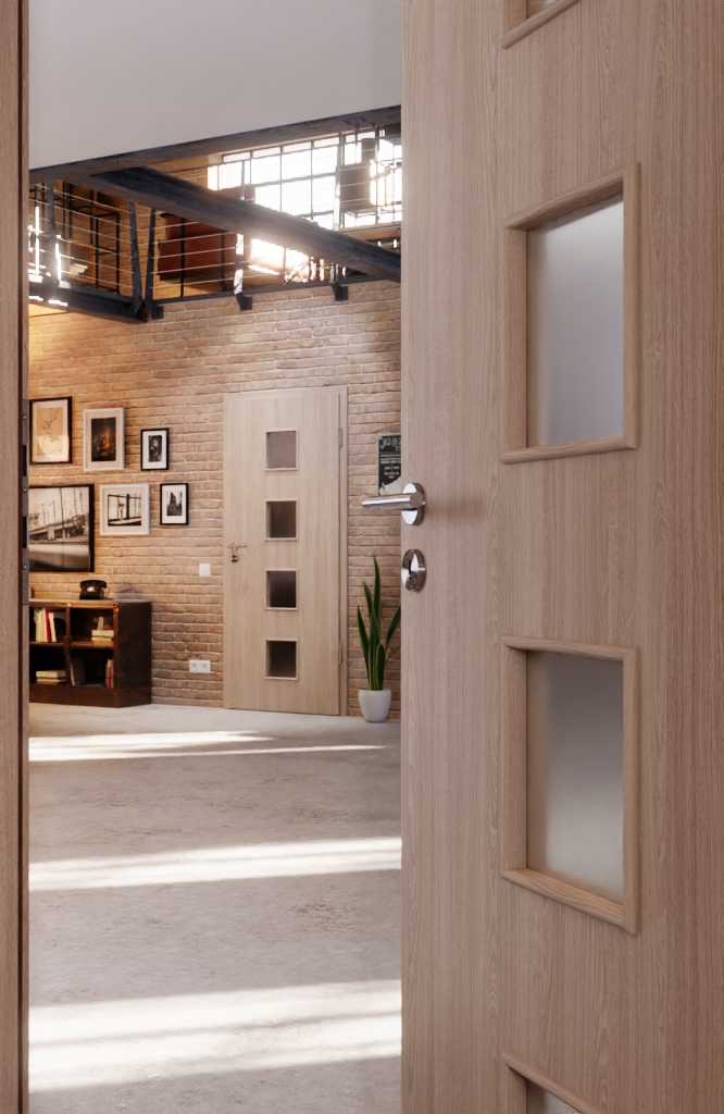 Dokładnie wykonane drzwi wewnętrzne posiadają solidny rdzeń pełnoobwodowy: