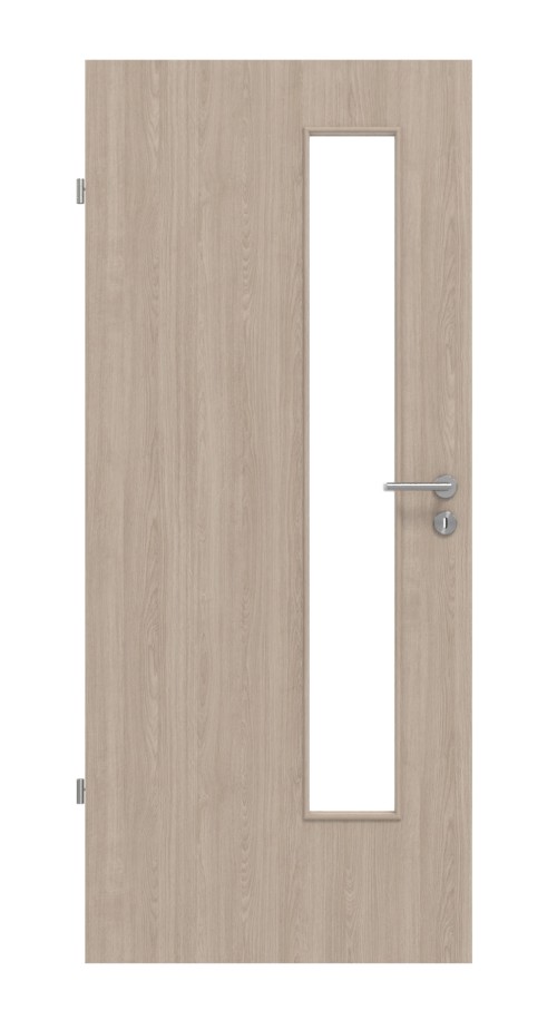 Charakterystycznym elementem nowoczesnego designu jest wąski otwór szklany po stronie zamka skrzydła drzwi. Urokliwy rysunek drewna przebiega wzdłuż dekoru dąb szary. Powierzchnia Durat jest wyjątkowo odporna na zarysowania i ścieranie. Dodatkowo można ją łatwo wyczyścić, co zapewnia wysoką trwałość.