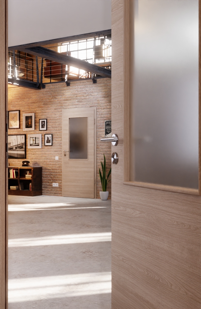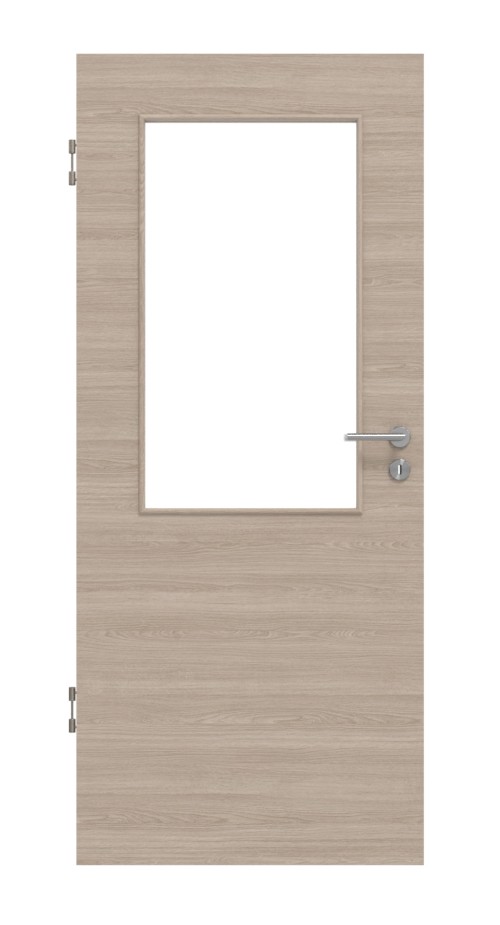 Ozdobione prostokątnym przeszkleniem w górnej części, drzwi te dają poczucie subtelnej otwartości. Delikatne linie finezyjnych słojów drewna rozciągają się poziomo na dekorze w szarym dębie. Dzięki wysokiej odporności, powierzchnia Durat jest odporna na zarysowania, uderzenia i ścieranie. Łatwo ją wyczyścić, a także jest odporna na ciepło i kolory.
