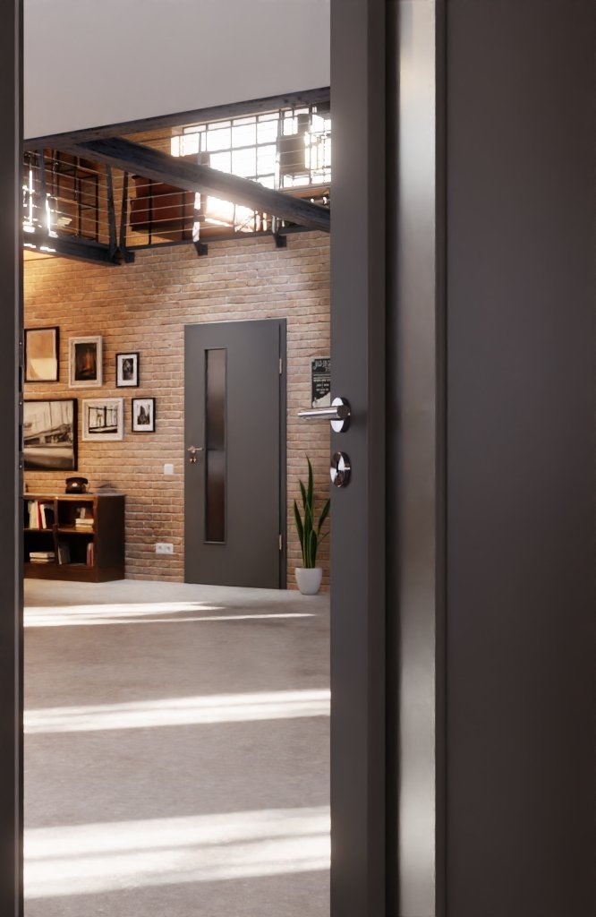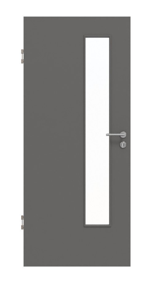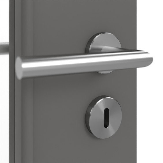 Szczupłe przeszklenie z nałożonymi listwami szklanymi przyciąga wzrok i stanowi umiejętny akcent. Dzięki nowoczesnemu kolorowi szarym jednolita powłoka dowodzi stylu i elegancji.