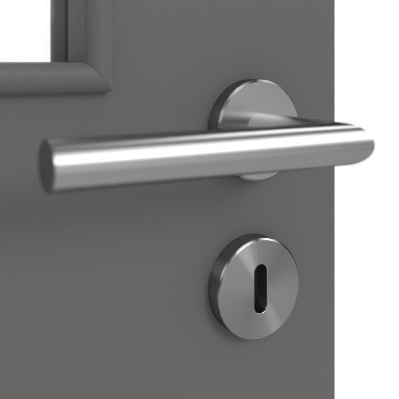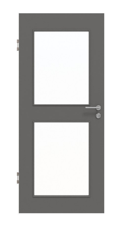 Dwa równomierne wycięcia szklane pozwalają na piękne wpuszczenie światła nawet w pozbawionym okien korytarzu. Równomiernie nałożona, elegancka lakier w kolorze szarym harmonijnie dopełnia model.