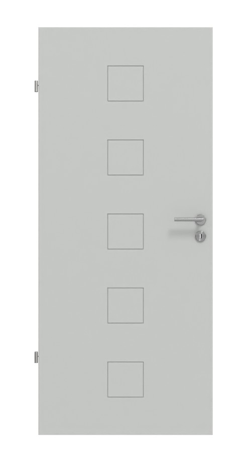 Robustne drzwi wewnętrzne z rdzeniem z płyty wiórowej i pięknym lakierem w szarości podobnej do RAL 7035: