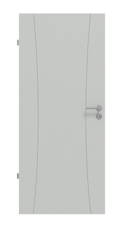 Nowoczesne drzwi wewnętrzne z rdzeniem z rur i harmonijnym lakierowaniem w szarości podobnej do RAL 7035: