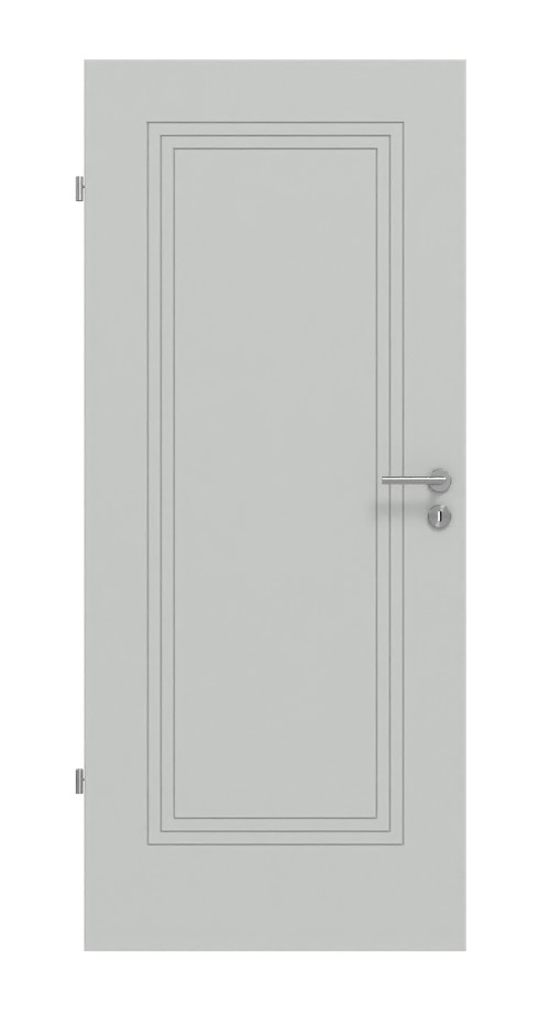 Nowoczesne drzwi wewnętrzne z rdzeniem z płyty wiórowej i równomiernym lakierowaniem w szarości podobnej do RAL 7035: