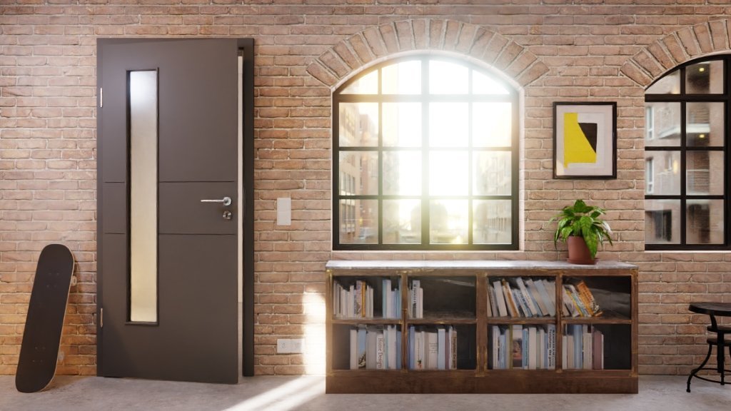 Stabilne drzwi wewnętrzne z pełnymi wzmocnieniami i harmonijnym lakierowaniem w kolorze Hygge Szary:
