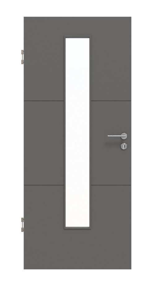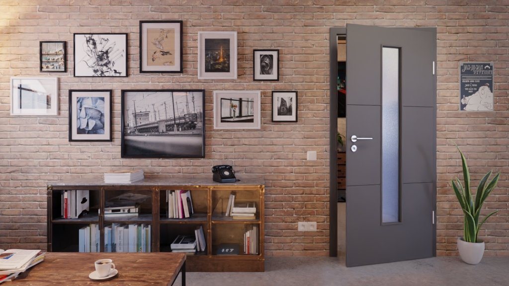 Nowoczesne drzwi wewnętrzne z rdzeniem z pełnego wióru i równomiernym lakierowaniem w kolorze Hygge Szarym: