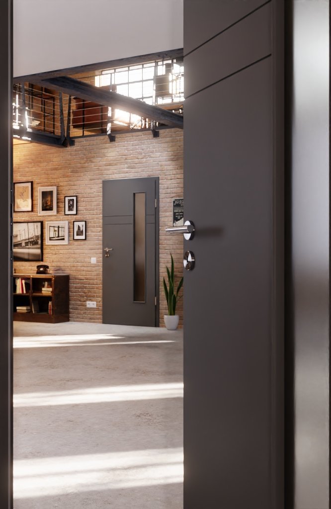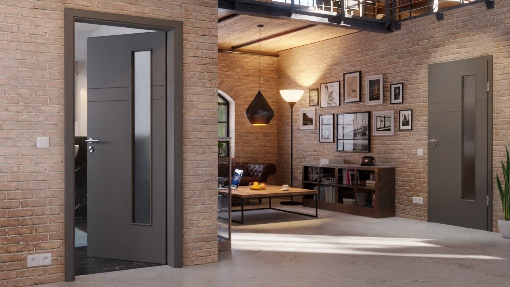 Solidne drzwi wewnętrzne z pełnymi wzmocnieniami i eleganckim lakierem w kolorze Hygge Szary: