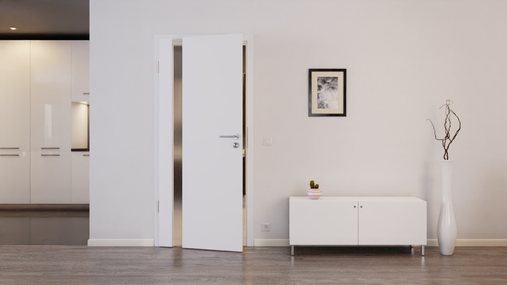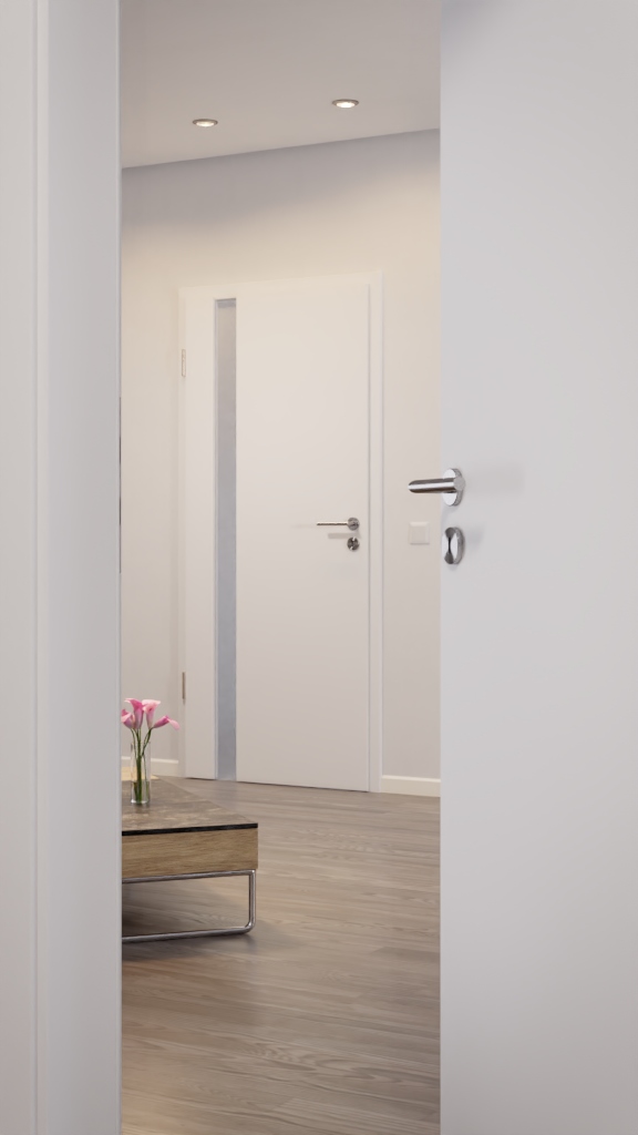 Wszechstronnie stosowane drzwi wewnętrzne z odporną na światło powłoką Durat, w tym wkładka szklana:
