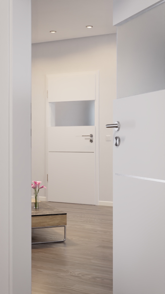 Trwałe drzwi wewnętrzne z łatwą w pielęgnacji powłoką Durat i segmentem szklanym:
