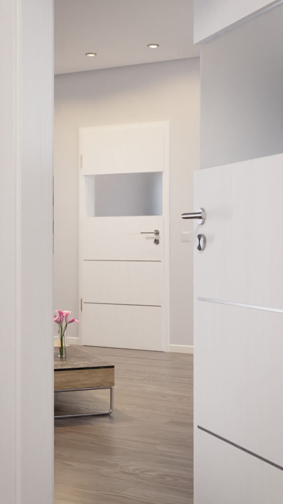 Wszechstronnie stosowane drzwi wewnętrzne z łatwą w pielęgnacji powłoką Durat z segmentem szklanym: