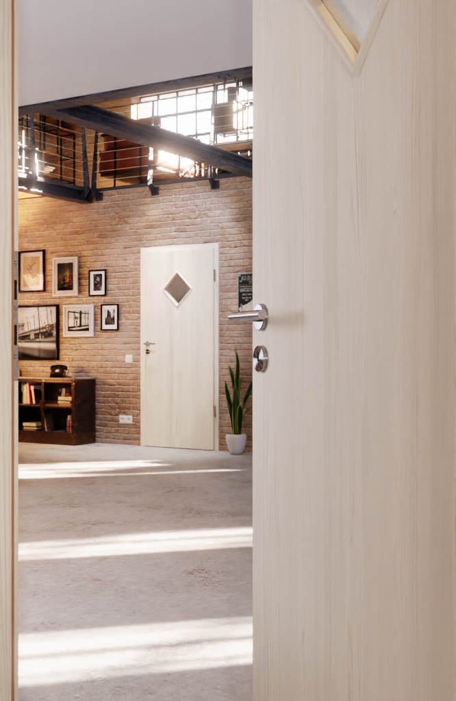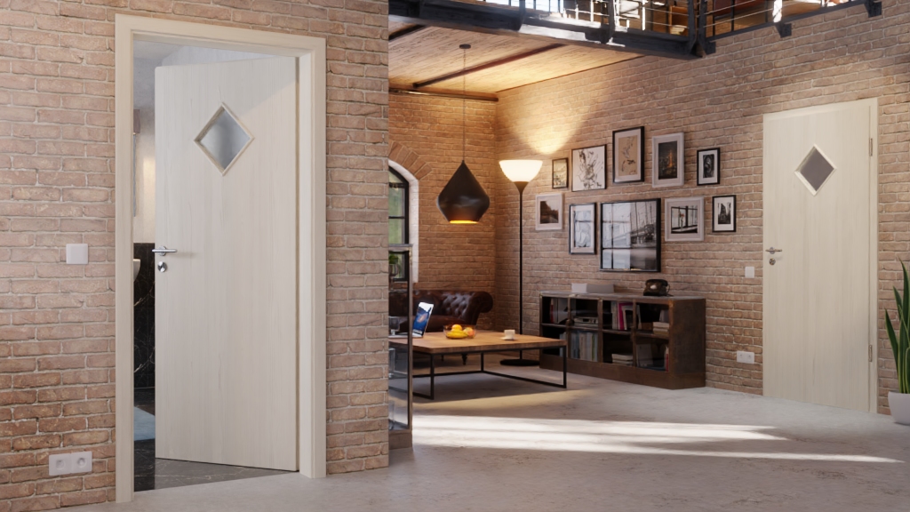 Elegancka wewnętrzna drzwi zawiera rdzeń z pełnego wióru: