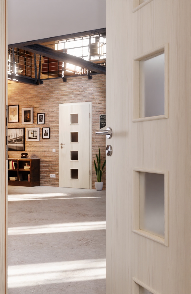 Ładna wewnętrzna drzwi posiada solidny rdzeń pełnościenny: